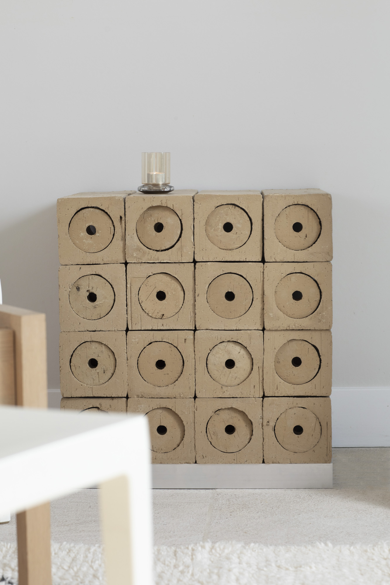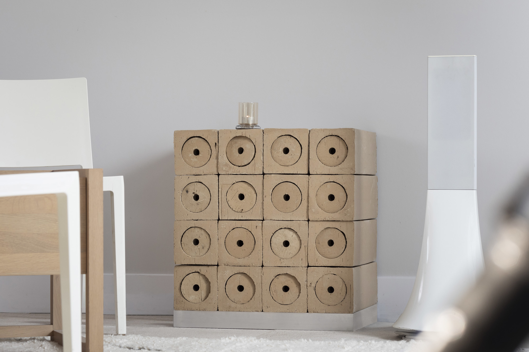 Cantina ecologica modulare, realizzata in argilla e composta da 16 scomparti individuali.