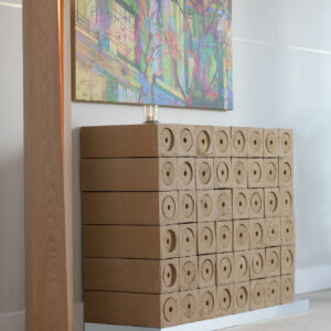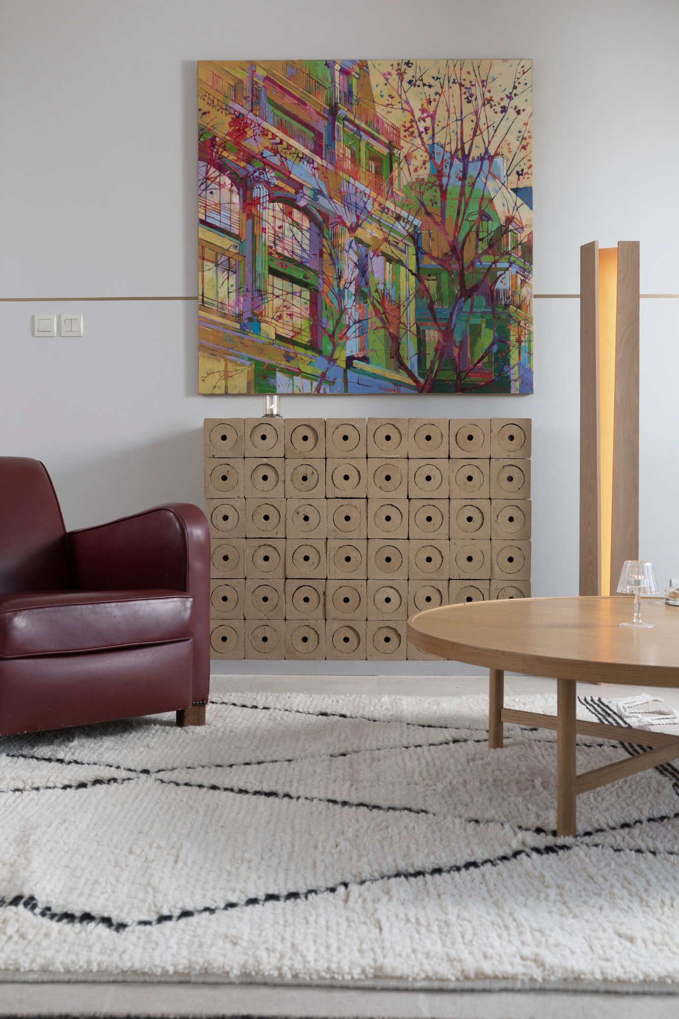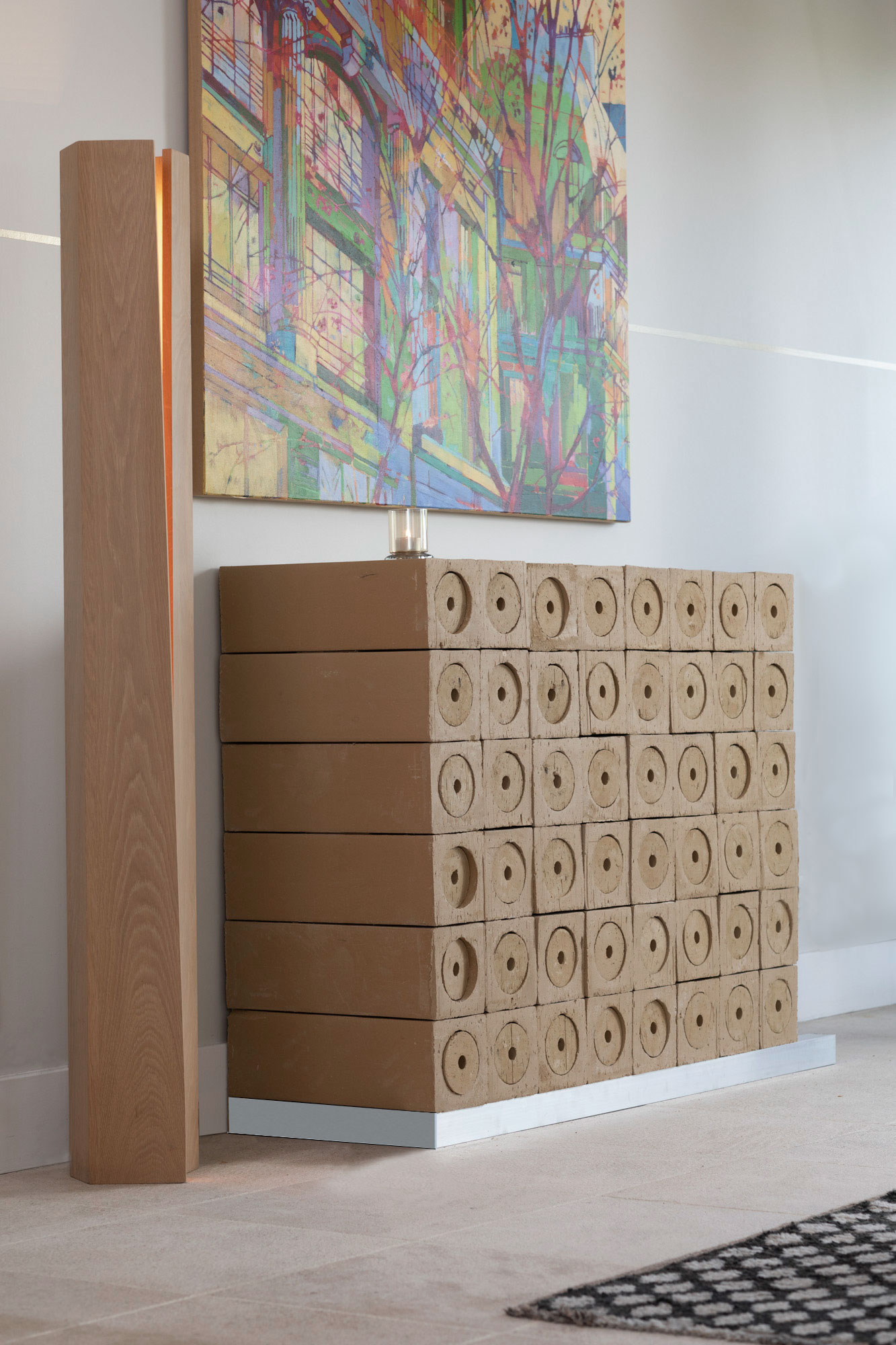 Cantina ecologica modulare, realizzata in argilla e composta da 48 scomparti individuali.