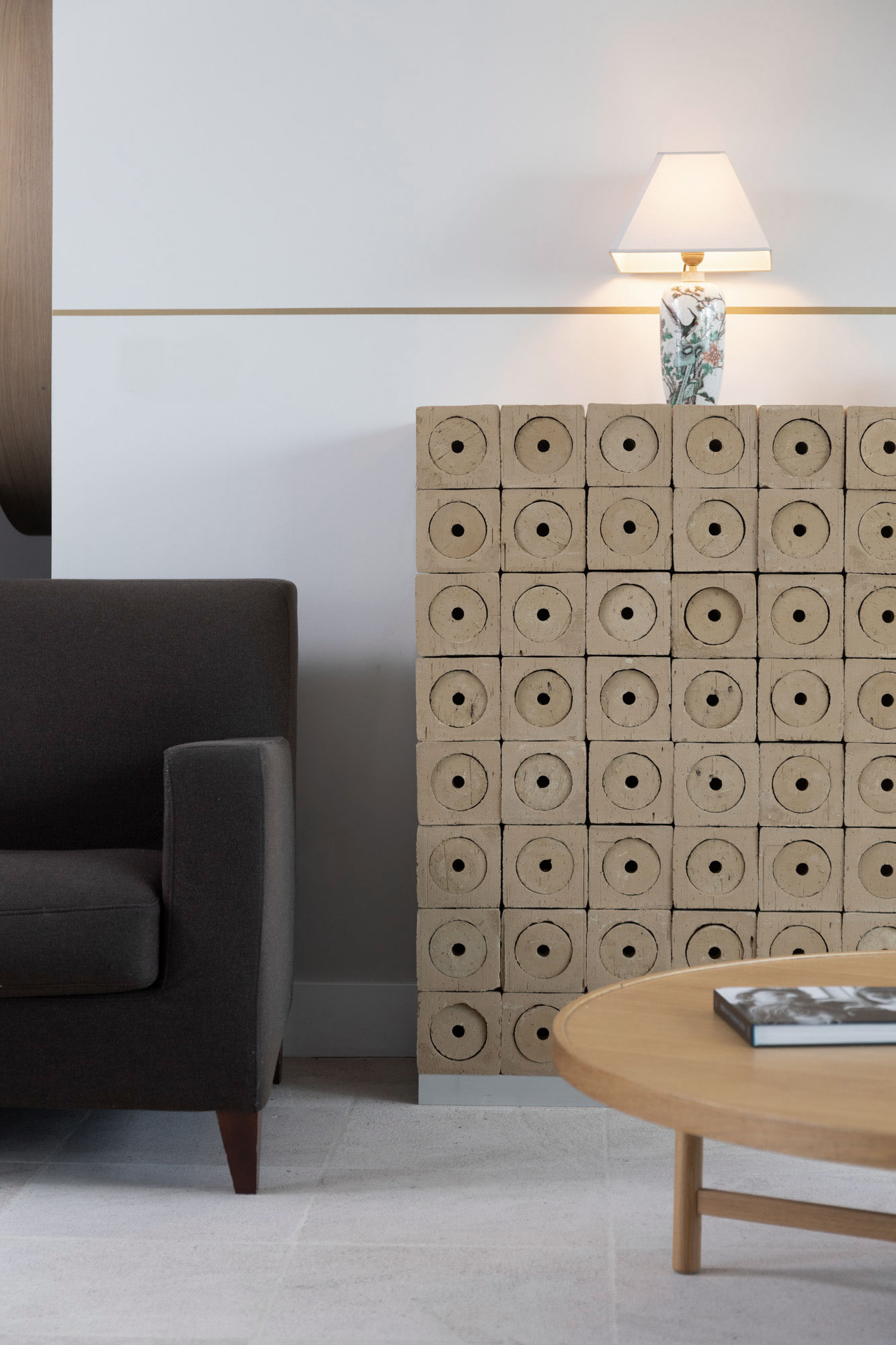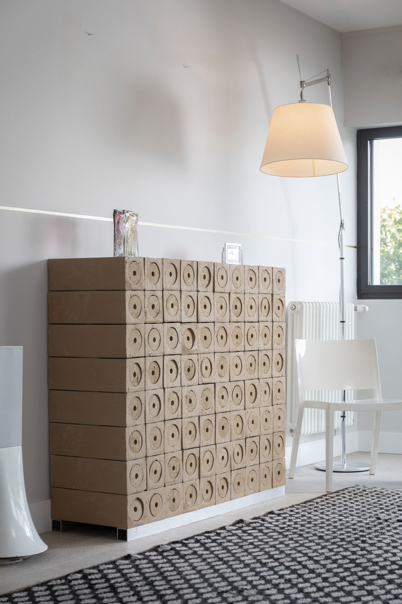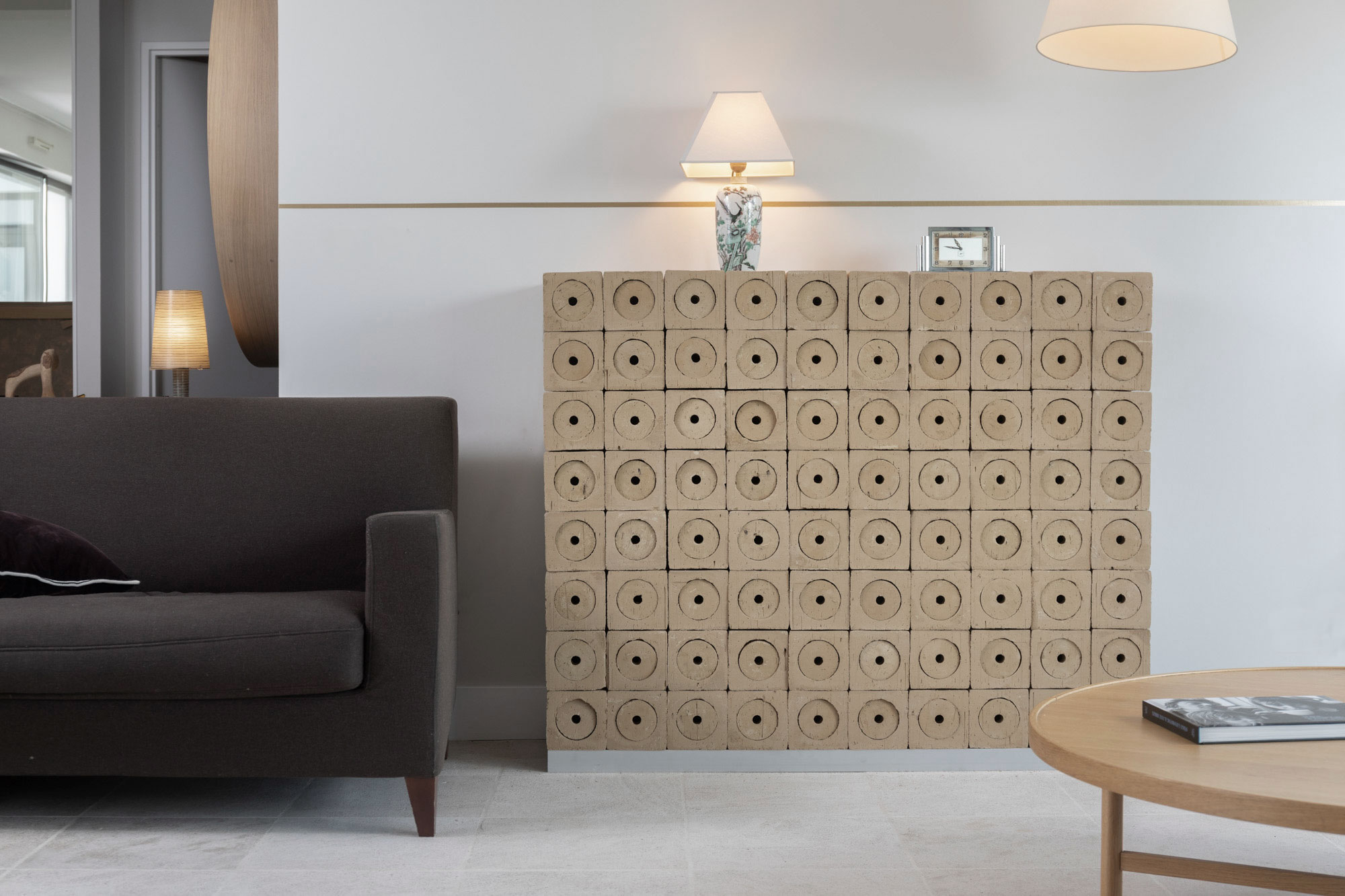 Cantina ecologica modulare, realizzata in argilla e composta da 64 scomparti individuali.